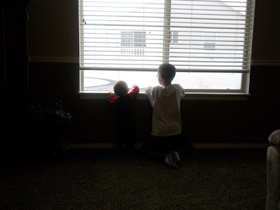 This is pictures of their heart pancake, eggs, and strawberries breakfast that morning. Kade is finally starting to eat a little solid food. Not much though. Maybe I will be packing a baby bottle in his lunchbox when he starts first grade at this rate?Monday, February 7, 2011
